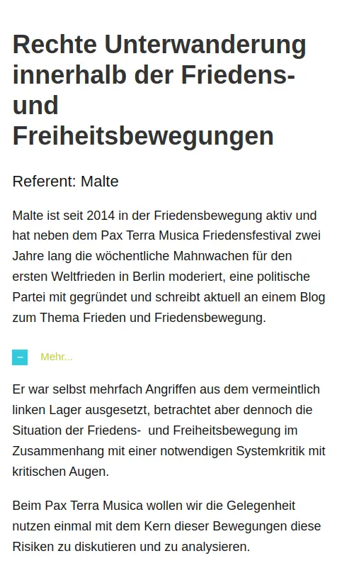 Herr Malte Klingauf, der Initiator der PTM, hat dazu einen Vortrag im Jahr 2022 mit dem Titel „Rechte Unterwanderung innerhalb der Friedens- und Freiheitsbewegungen“ gehalten.