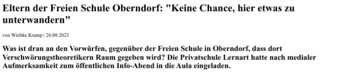 Hier finden sich weitere Fehler. Es stimmt zum Beispiel nicht, dass meine Frau die Gründung einer „Freien Schule Cuxland“ vorbereitet. Sie hat diese Schulgründungsinitiative zu Beginn beraten, so wie sich viele Initiativen bei unserer Schule melden und nach Unterstützung fragen. Seit Anfang 2023 besteht jedoch kein Kontakt mehr zu dieser Initiative.